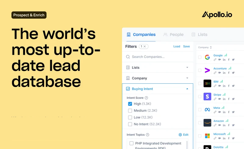 Apollo.io provides world’s most updated lead database with 250 million+ verified contacts. You can get leads targeted by industry, niche, job titles, demographics, firmographics with detailed data points and contact data. We’ll provide you leads from Apollo as per your requirements along with their verified contact information (verified emails, linkedin profiles, business phone).